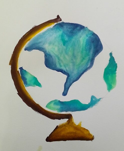 Watercolor globe, by Alice.